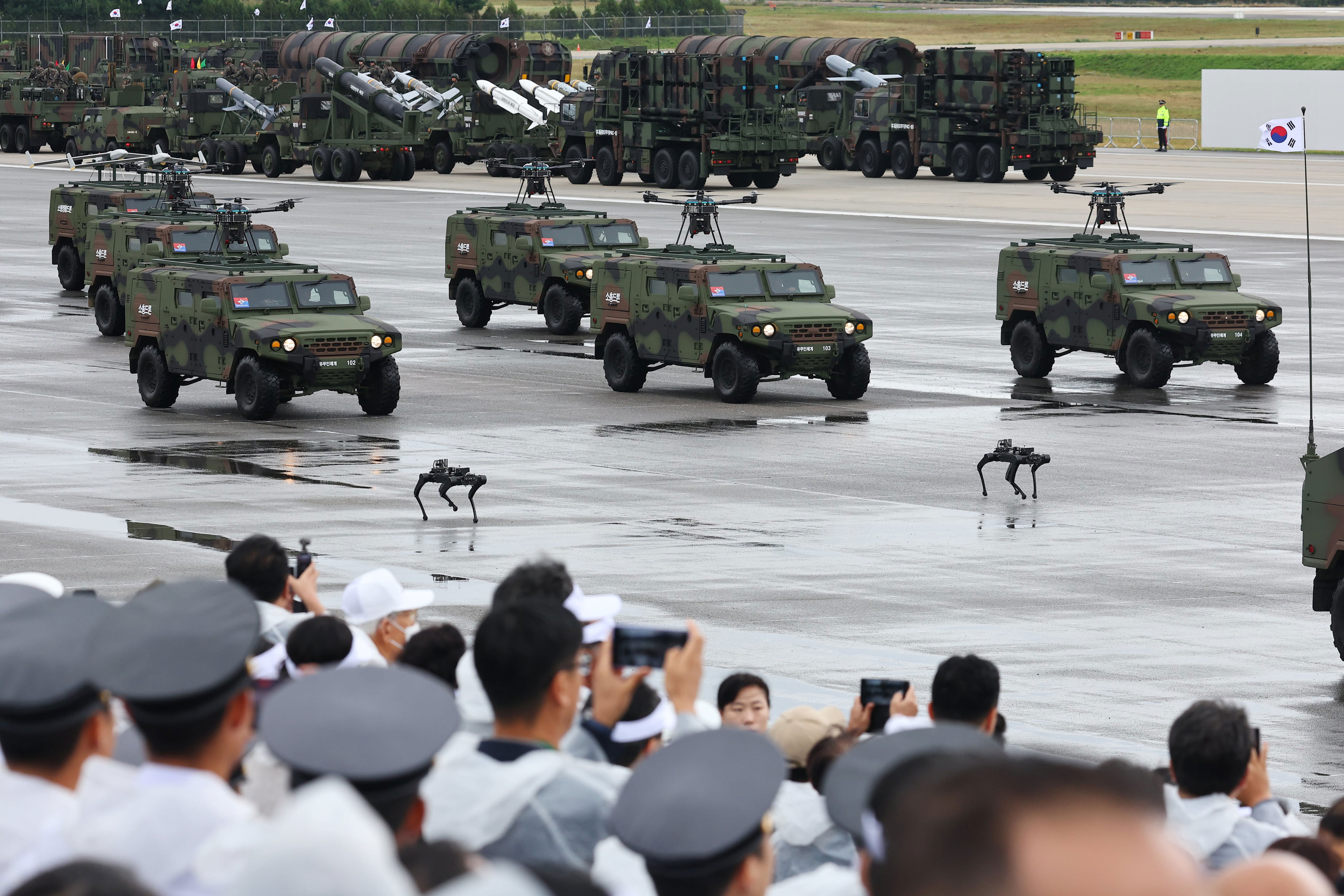 South Korea has been making significant strides in military technology, with a focus on integrating advanced systems into its defense strategies. Last year’s Armed Forces Day ceremony highlighted one such innovation—a quadrupedal robot resembling a dog. Unlike traditional unmanned and manned weapon systems that rely on vehicles for mobility, this robot was the only one to walk on legs during the parade. Developed under the Defense Innovation 4.0 rapid research program, it is designed for counter-terrorism operations. The robot can move at speeds exceeding 4 km/h and is capable of climbing vertical obstacles, such as stairs up to 20 cm high.